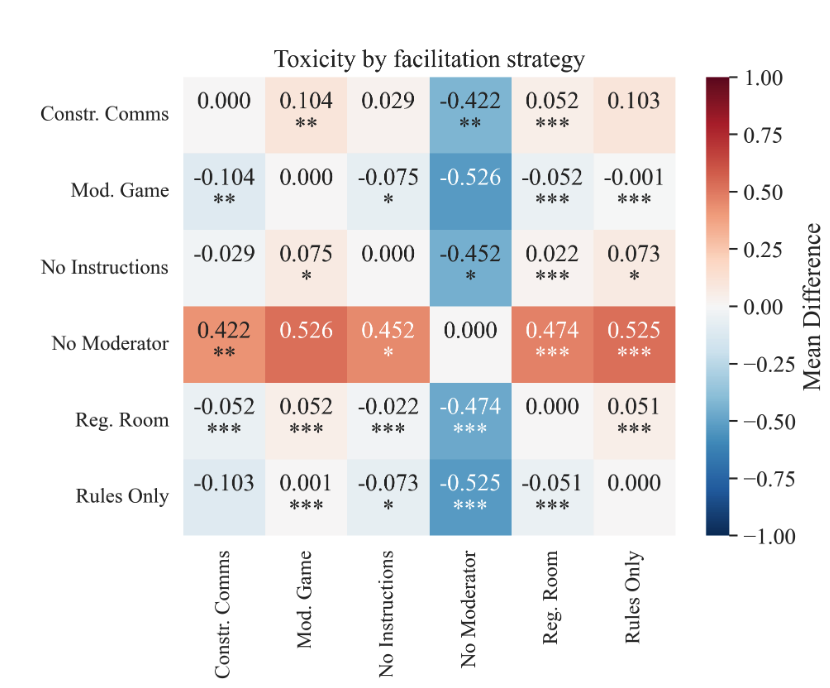 - No instructions: LLM provided with basic instructions like “You are a moderator, keep the discussion civil.”